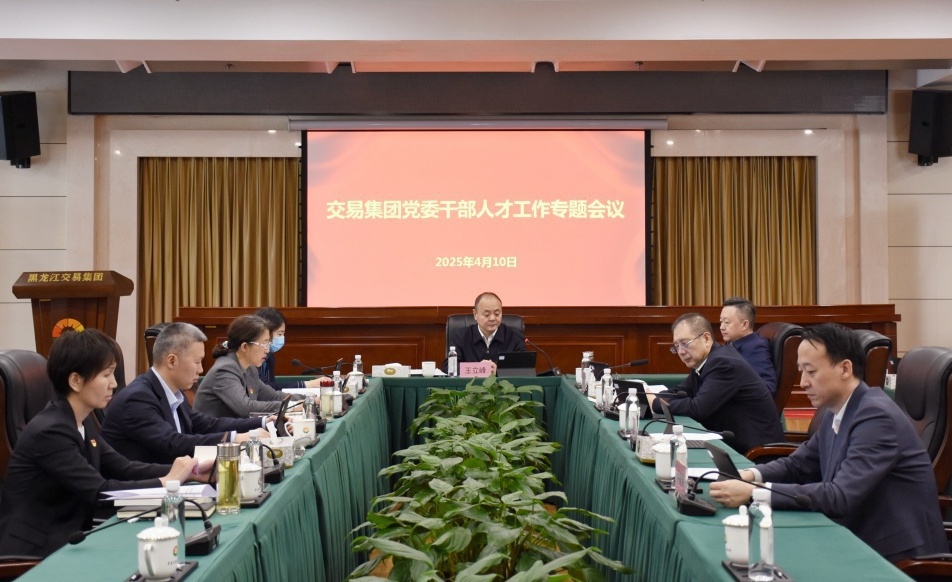 4月10日,交易集團黨委召開干部人才工作專題會議,深入學習習近平總書記對年輕干部作出的重要指示精神,《習近平總書記關于黨的建設的重要思想概論》中第七章“堅持造就忠誠干凈擔當的高素質干部隊伍”,全國和全省組織部長會議精神,以及《黑龍江省國資委干部儲備培養和使用工作規劃(2022-2026 年)》等內容,對集團干部人才工作進行安排部署。