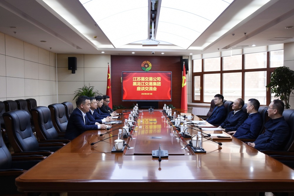 4月15日,江蘇易交易信息科技有限公司(以下簡稱易交易)董事長王昕一行到交易集團座談交流,交易集團黨委書記、董事長王立峰與來訪客人進行座談。交易集團黨委副書記、副董事長、總經理夏明禹,易交易常務副總經理蔣瀚湜出席座談,雙方有關部門和權屬企業負責同志參加座談。